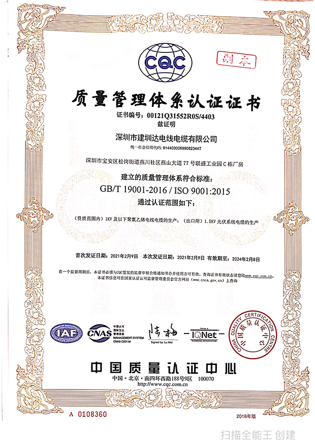 深圳建圳達(dá)電線電纜有限公司,成立于2000年,是一家電線電纜制造商,我們通過(guò)了世界各地不同市場(chǎng)的多數(shù)認(rèn)證,如:CCC、RoHS、CB、SAA、TUV、VDE、PSE、BPS、UL、CSA。我們根據(jù)定制產(chǎn)品不斷更新新的認(rèn)證。經(jīng)過(guò)數(shù)十年的發(fā)展,我們與來(lái)自世界各地的客戶建立了長(zhǎng)期的合作關(guān)系。我們?cè)?jīng)是菲律賓機(jī)場(chǎng),,柬埔寨的電力站,美國(guó)的醫(yī)院,工廠,埃塞俄比亞的水電站項(xiàng)目。我們是一家值得信賴的電線供應(yīng)商。